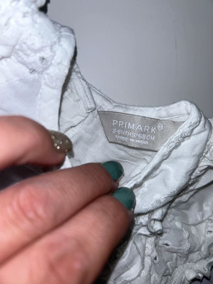 Tee shirt / blouse blanche avec broderies + volants 3/6 mois #3moisfillealexiaguillou2206