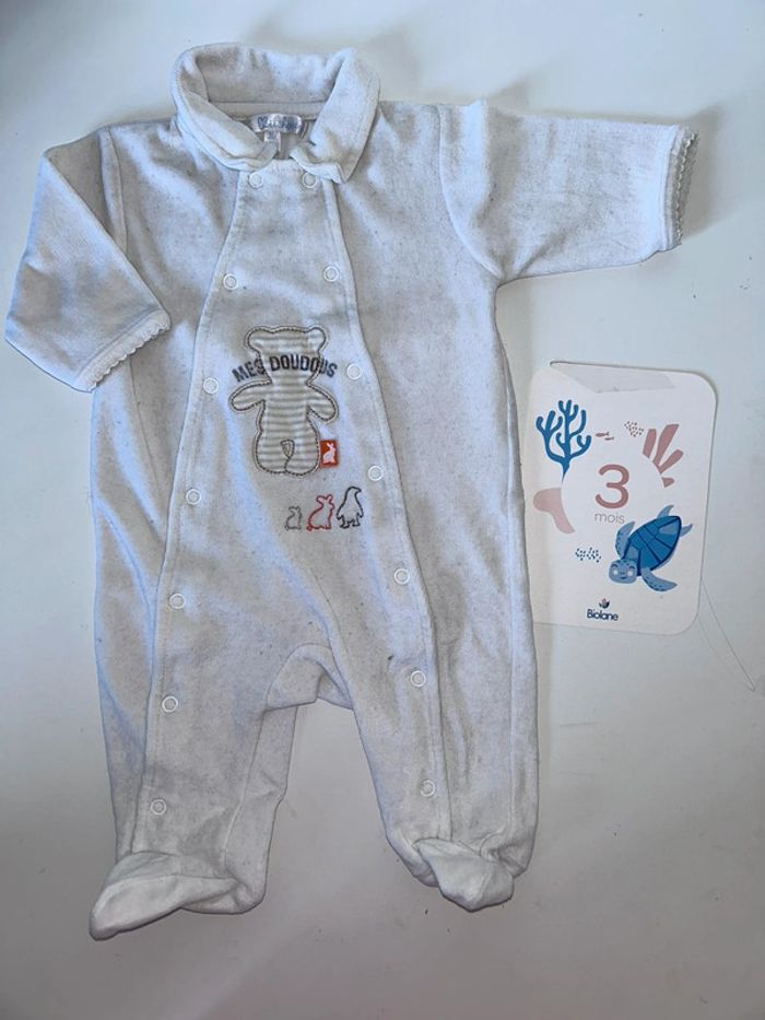 Pyjama avec col , ouverture par devant «  mes doudous » 3 mois #3moisgarconalexiaguillou2206