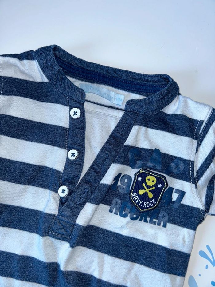 Tee shirt manches longues rayé bleu marine et blanc 12 mois #12moisgarconalexiaguillou2206