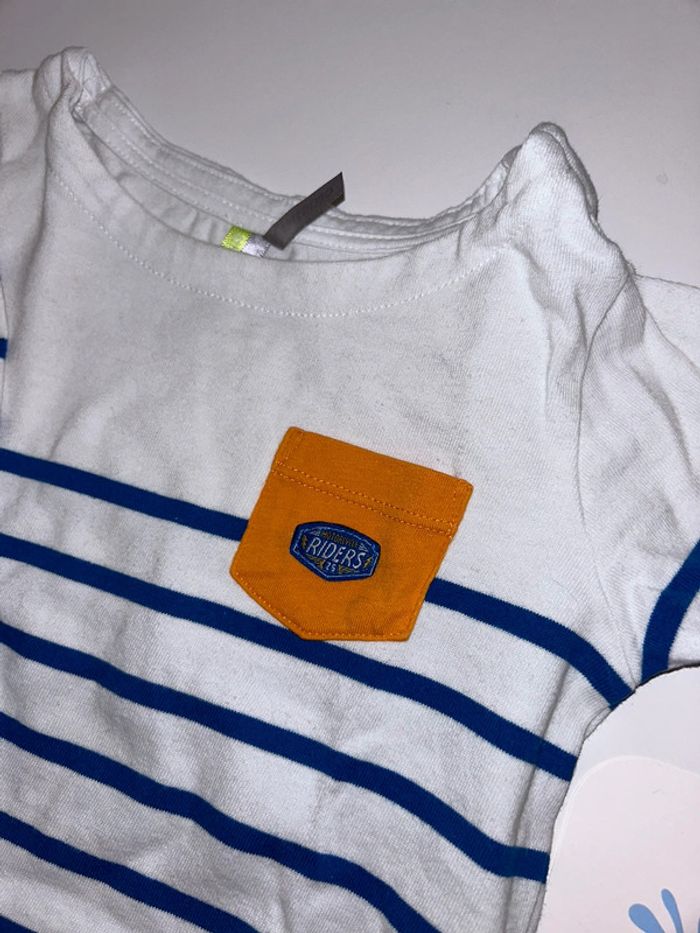 Pull fin blanc à rayures bleu . Orchestra 12 mois #12moisgarconalexiaguillou2206