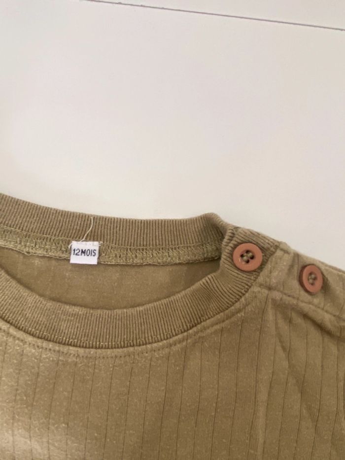 Tee shirt manches longues kaki Un peu épais par rapport à un tee shirt , mais plus fin qu’un pull . 12 mois #12moisgarconalexiaguillou2206