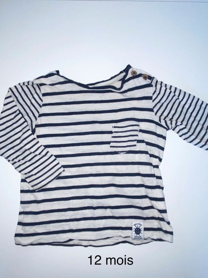 Tee shirt manches longues «  marinière » H&M Taille 9/12 mois mais taille comme un 12 mois #12moisgarconalexiaguillou2206