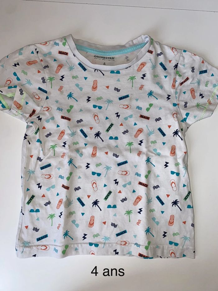 Tee shirt manches courtes «  thème vacances - éte » Quelques taches légères ( voir photos ) , le reste ok Orchestra 4 ans #4ansgarconalexiaguillou2206