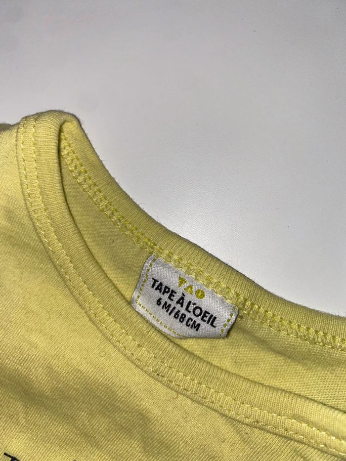 Tee shirt manches longues «  demain je serai peut être sage » Couleur jaune / vert anis TAO ( tape à l œil) 6 mois #6moisgarconalexiaguillou2206