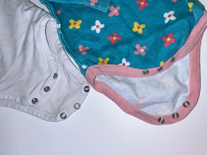 Lot de deux bodies manches longues ( 1 ouverture par devant avec oiseau ( 1 mois ) , l’autre à enfiler « fleuri » ( 0/3 mois) ) . Un orchestra et un sans marque Le lot 5€ #1moisfillealexiaguillou2206
