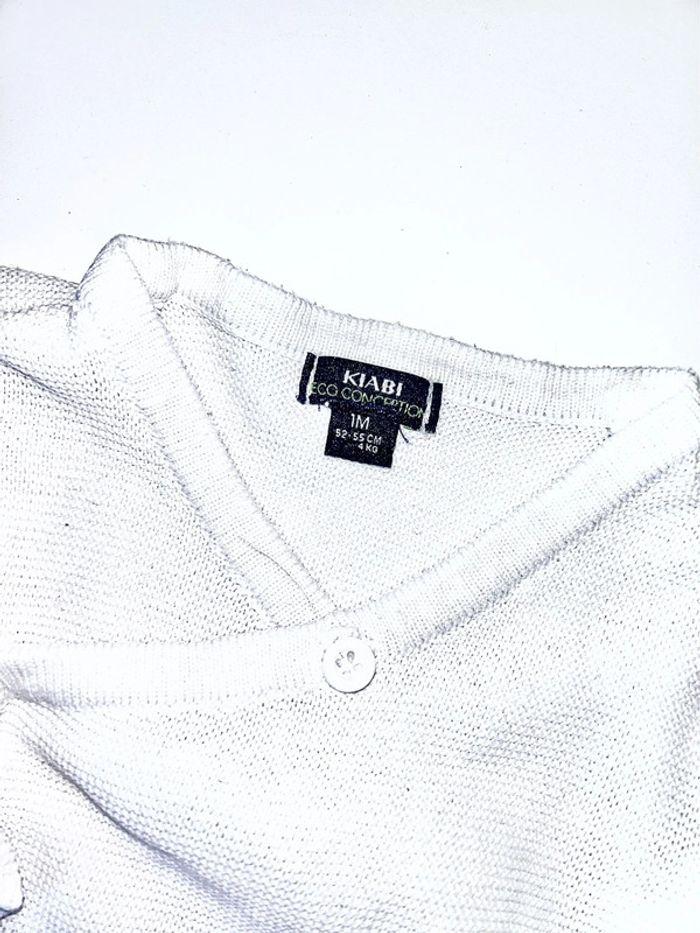 Gilet blanc , fermeture cache cœur / croisé . Système de fermeture par boutonnage Mixte 1 mois #1moisfillealexiaguillou2206 #1moisgarconalexiaguillou2206