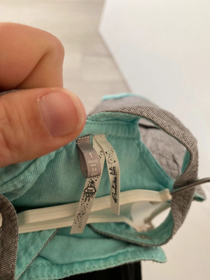 Salopette été, couleur grise et bleu turquoise Orchestra 1 mois #1moisgarconalexiaguillou2206