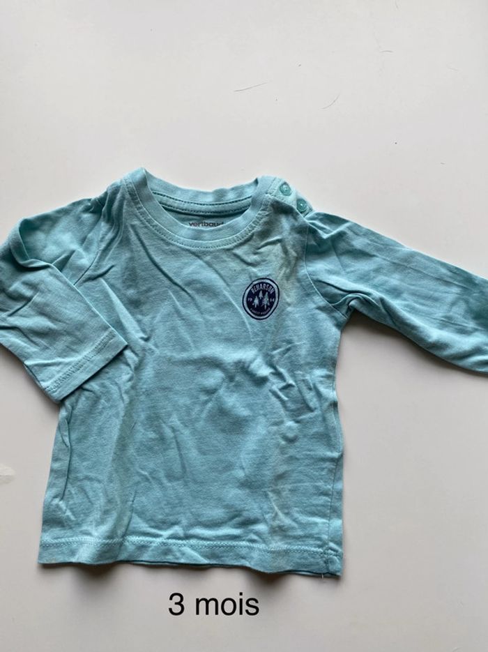 tee shirt manches longues bleu clair Vertbaudet 3 mois #3moisgarconalexiaguillou2206