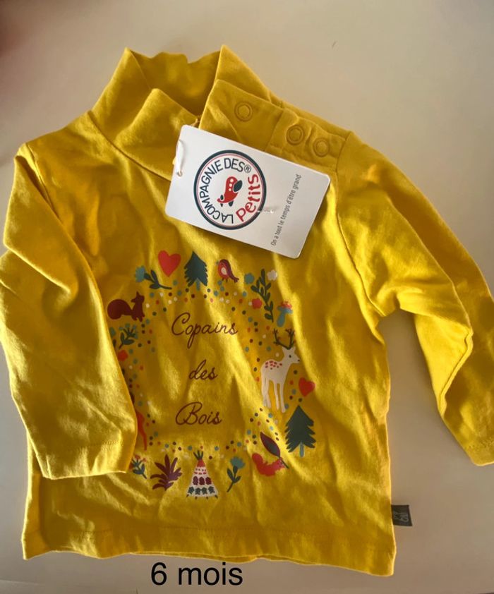 tee shirt a manches longues «  copains des bois » mixte ne conviens pas , encore étiqueté ! 6 mois #6moisgarconalexiaguillou2206