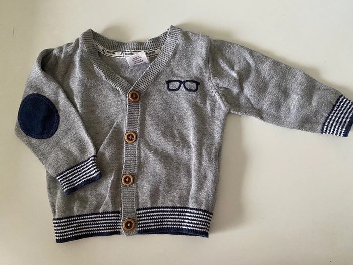 gilet gris et bleu marine . boutonnage bois marque : la redoute taille : 71 cm - 6 mois #6moisgarconalexiaguillou2206