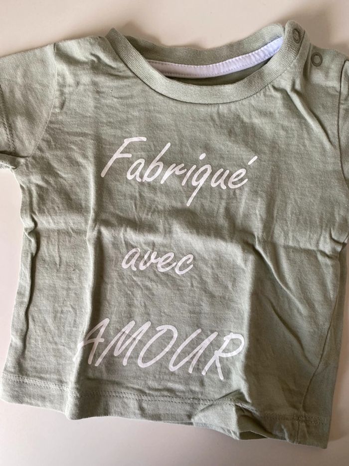 Tee shirt très peu porté «  fabriqué avec amour » 3 mois #3moisgarconalexiaguillou2206