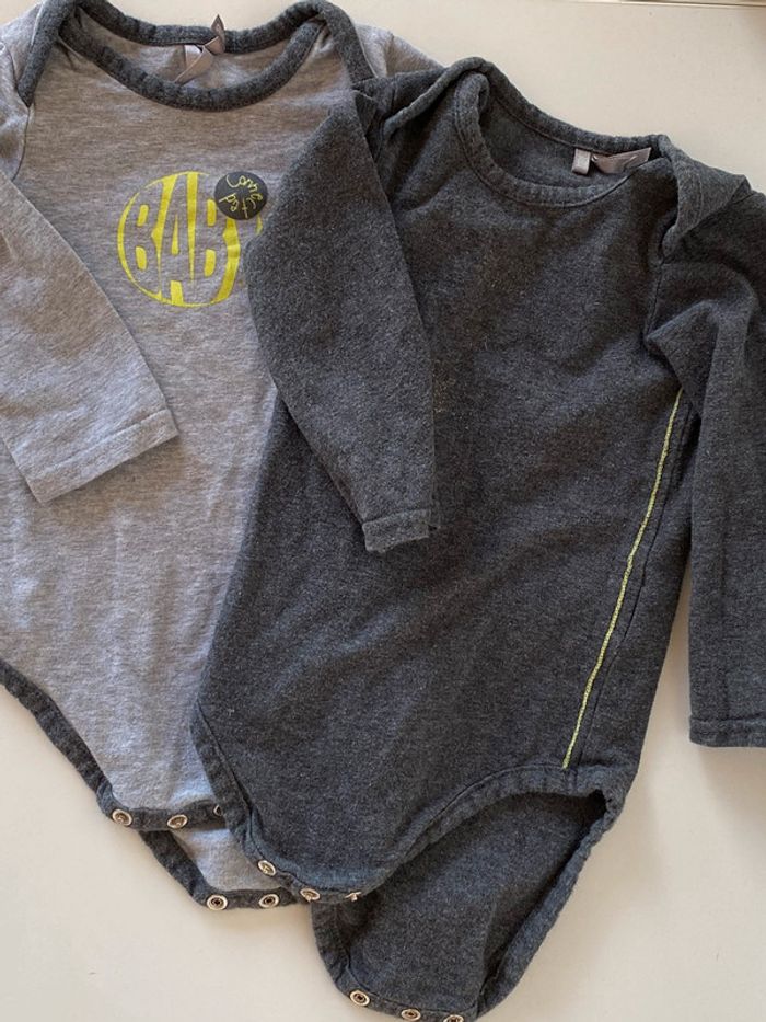 lot de deux bodies à manches longues - gris clair « baby » - gris foncé ( le transfert est parti ) le lot 3€ 12 mois #12moisgarconalexiaguillou2206