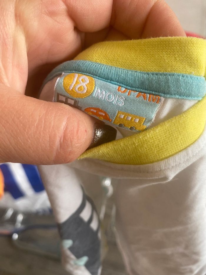 tee shirt a manches courtes , motifs voiture , tache légère (voir photo ) taille 18 mois marque DPAM ( du pareil au même ) #18moisgarconalexiaguillou2206