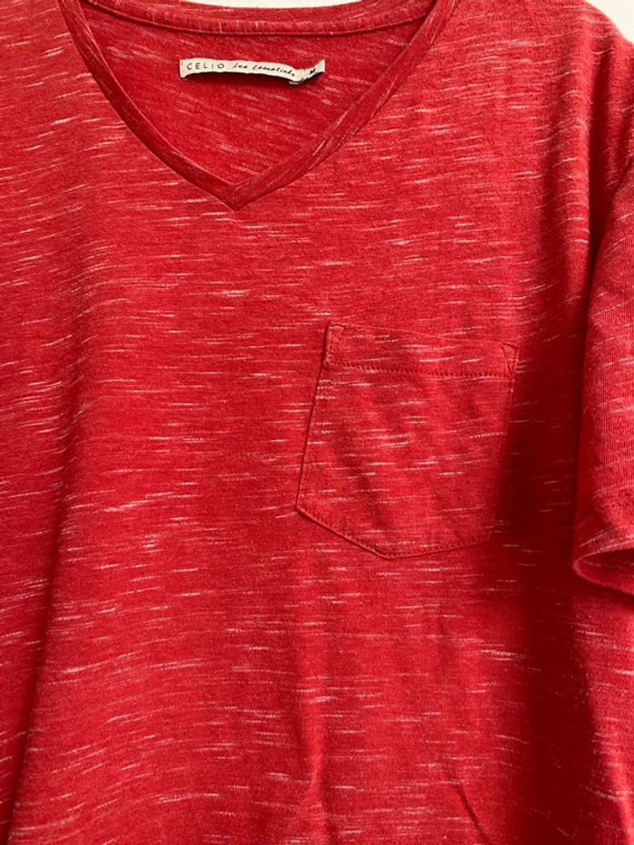 tee shirt manches courtes couleur rouge col v taille M #38hommealexiaguillou2206
