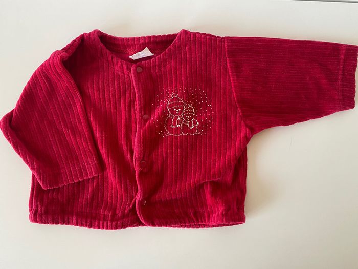 gilet tout doux à pressions rouge , motif bonhomme de neige 6 mois #6moisgarconalexiaguillou2206