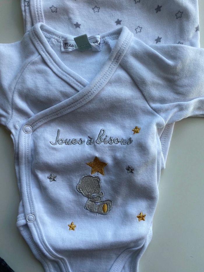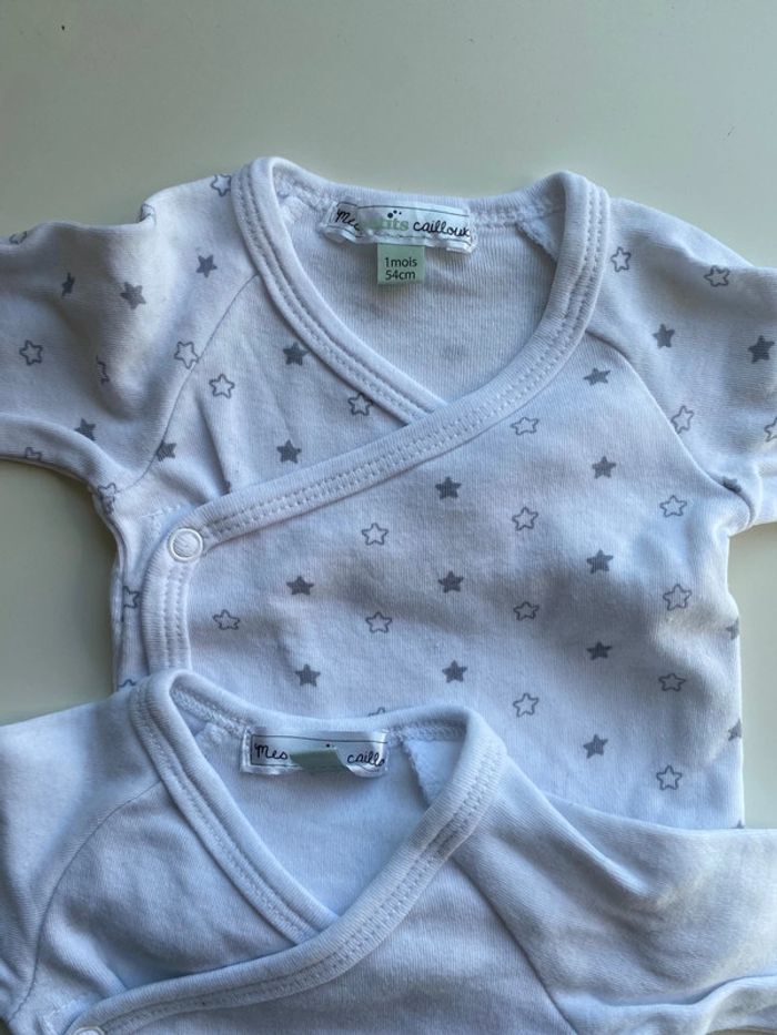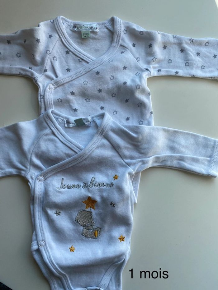 lot de deux bodies , manches longues ouverture par devant «  joues à bisous »et un « étoiles » 1 mois le lot 4€ #1moisgarconalexiaguillou2206