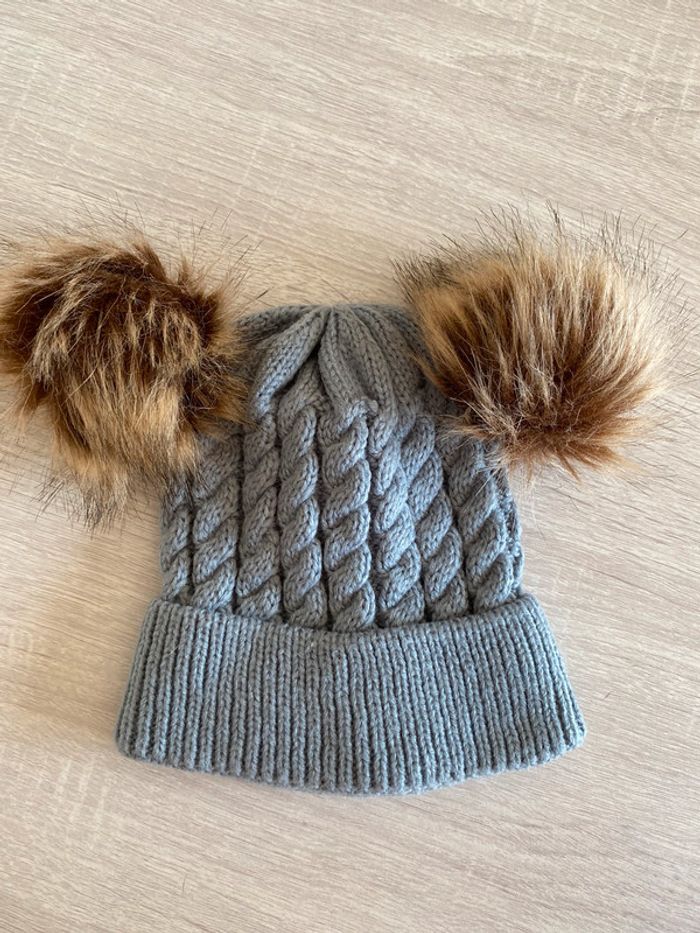 bonnet gris , avec pompons 2 ans ( 24 mois ) #accessoiresenfantsalexiaguillou2206