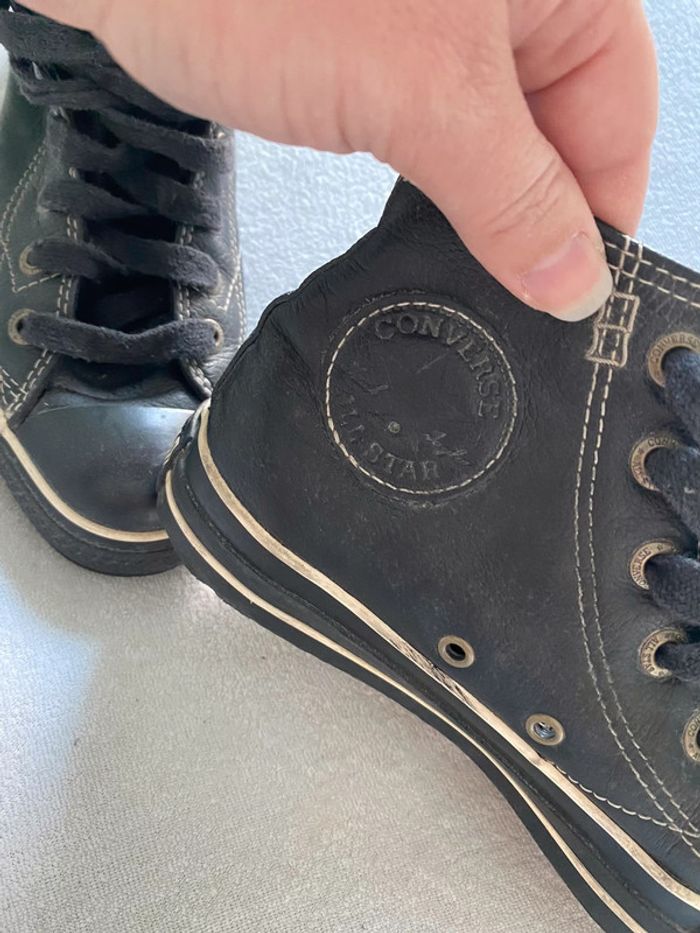 converse All star en cuir noir , une partie à l’intérieur une partie s est défaite, mais ça n’empêche pas du tout de les portées . Photo sur demande . pointure 37 #chaussuresfemmealexiaguillou2206 à