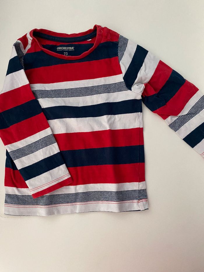 tee shirt a manches longues rayé tricolore ( bleu marine rouge et blanc ) taille 23 mois ( 2 ans ) #24moisgarconalexiaguillou2206