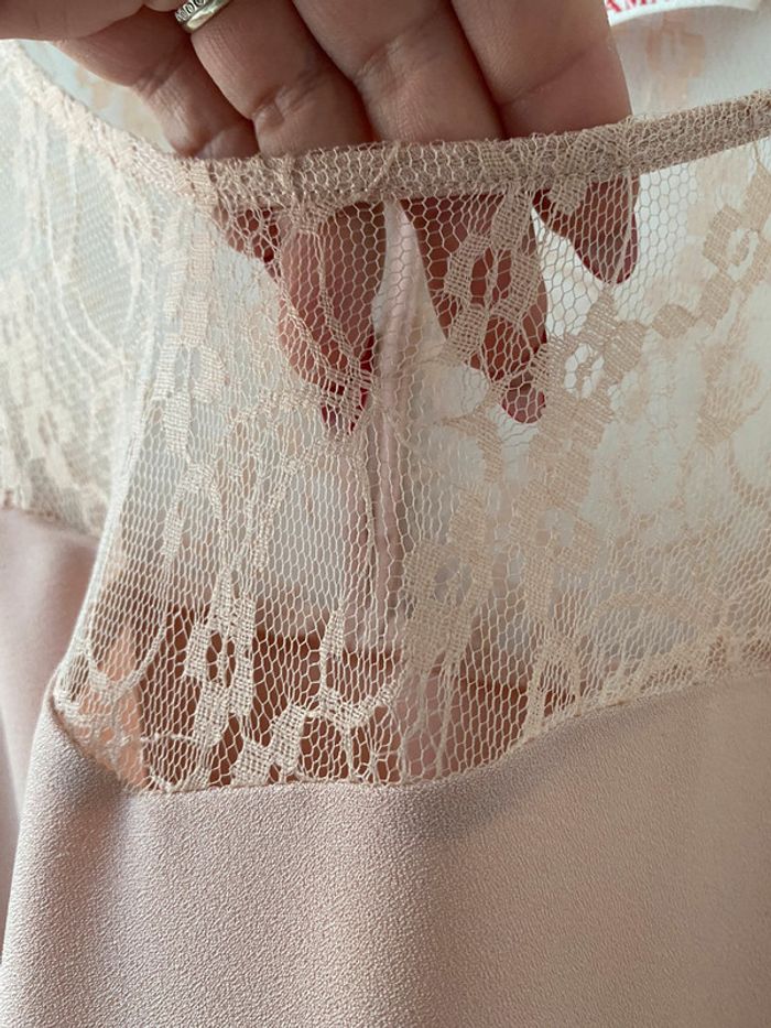 tee shirt «  vieux rose » dentelle ;faisant le tour sur le haut du tee shirt . taille 40 - L porté qu’ une fois #40femmealexiaguillou2206