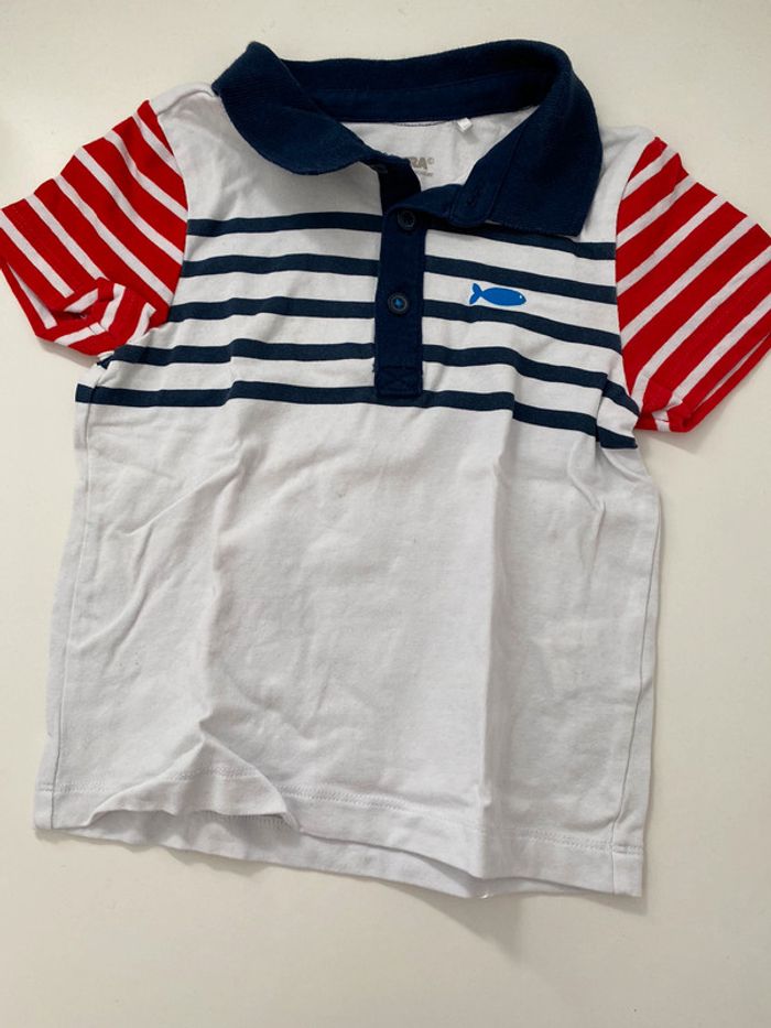 polo à manches courtes blanc a rayures bleu marine et rouge neuf jamais porté , juste lavé en machine après l’achat 23 mois ( 2 ans ) #24moisgarconalexiaguillou2206