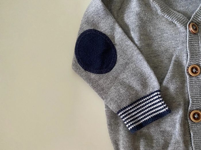 gilet gris et bleu marine . boutonnage bois marque : la redoute taille : 71 cm - 6 mois #6moisgarconalexiaguillou2206