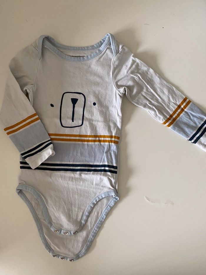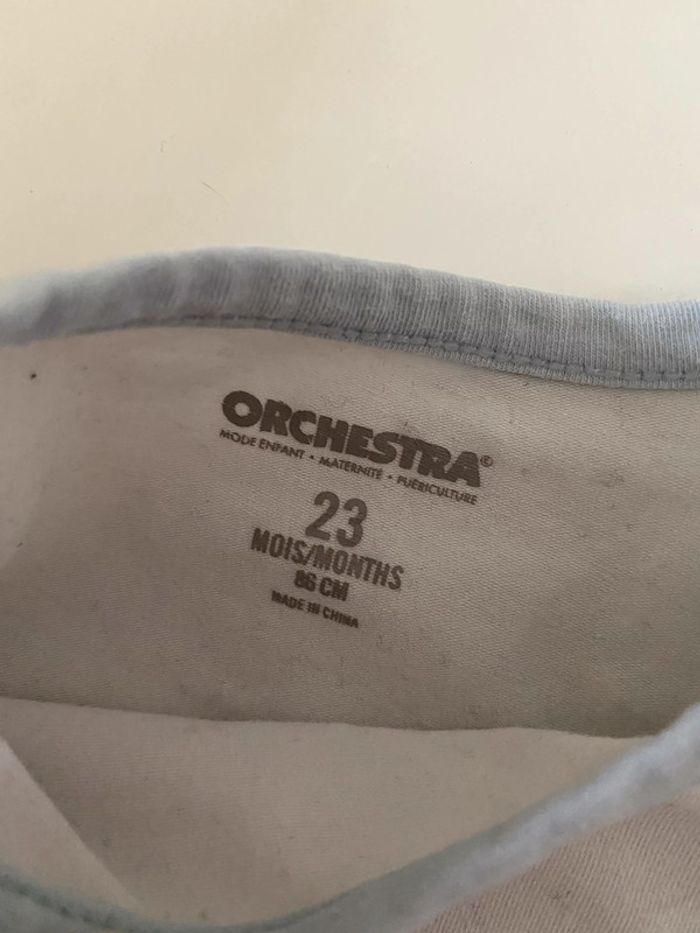 bodie a manches longues tache très clair à l’arrière , ne se vois pas une fois le pantalon mis ( voir dernière photo ), le reste ok marque : orchestra 23 mois - 2 ans #24moisgarconalexiaguillou2206