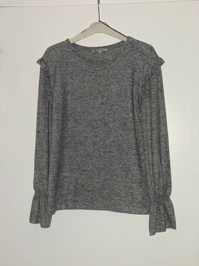 pull 38-40 gris chiné . porté qu une seule fois ! petits volants sur les épaules , resserré en bas des manches . très joli #38femmealexiaguillou2206