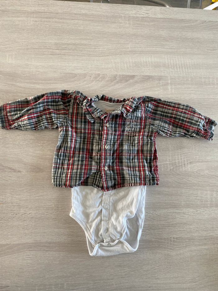 bodie a manches longues + chemise par dessus qui es accroché . voir photos des pressions , tout petit détail mais je préfère le préciser. Marque : Timberland Taille : 6 mois #6moisgarconalexiaguillou2206