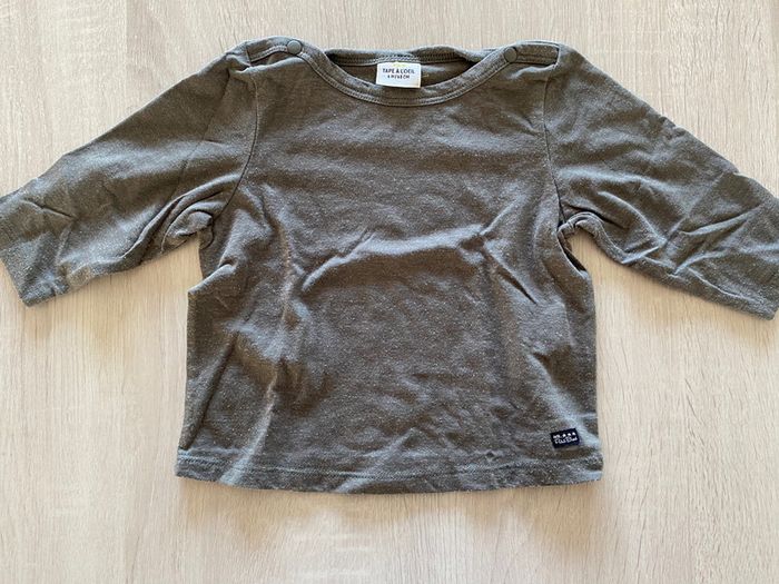 tee shirt manches longues gris foncé , tirant vers le kaki TAO ( tape à l’œil ) 6 mois #6moisgarconalexiaguillou2206