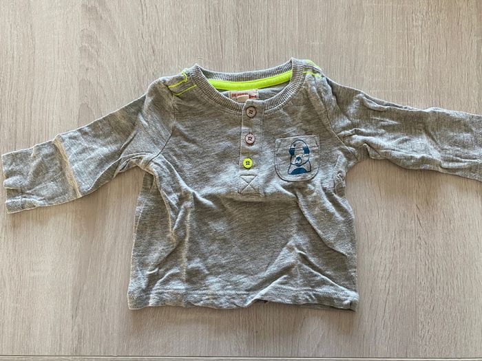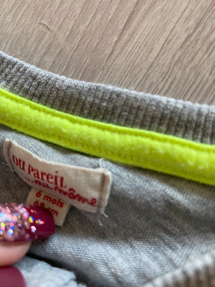 tee shirt a manches longues gris et vert / jaune fluo . marque : DPAM ( du pareil au même ) 6 mois #6moisgarconalexiaguillou2206