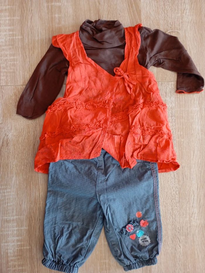 Ensemble hiver 6 mois 3 pièces Pantalon+ sous pull+ débardeur Bon état général