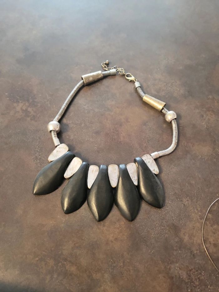 Collier métal et résine.