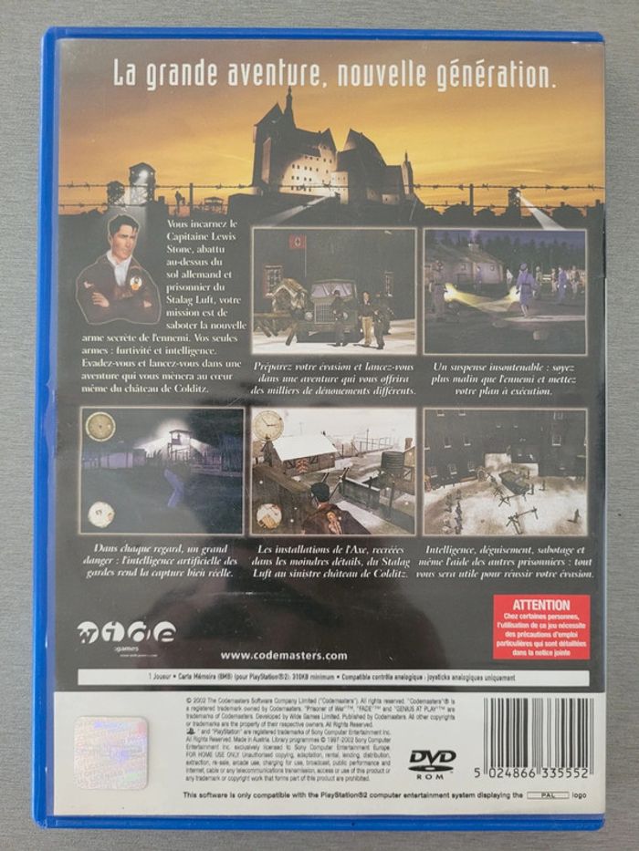 Jeux vidéo PlayStation PS2 . Prisoner of War . Avec notice . Disque sans rayures .