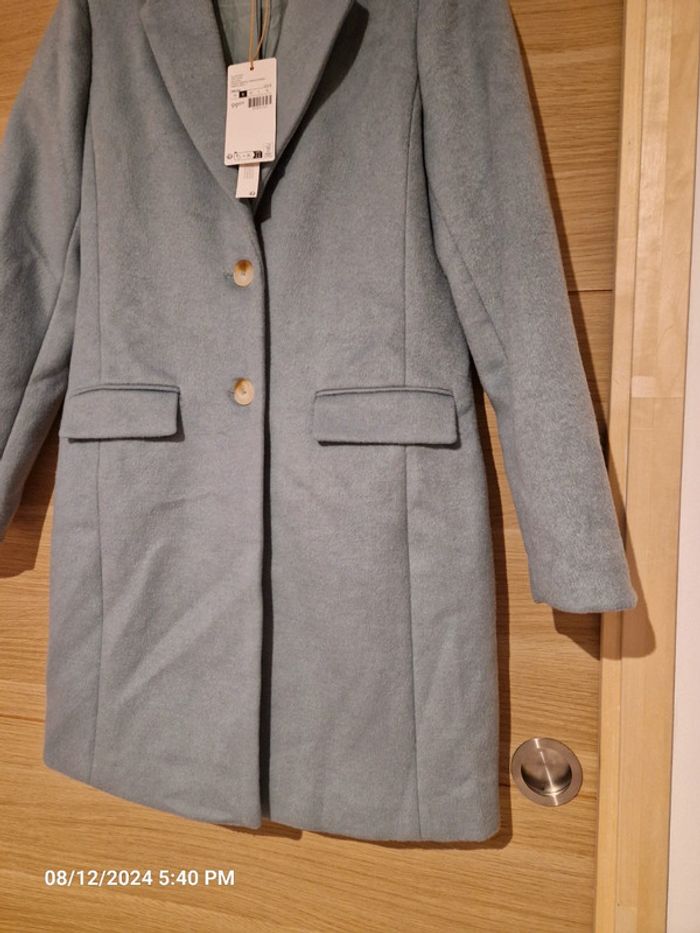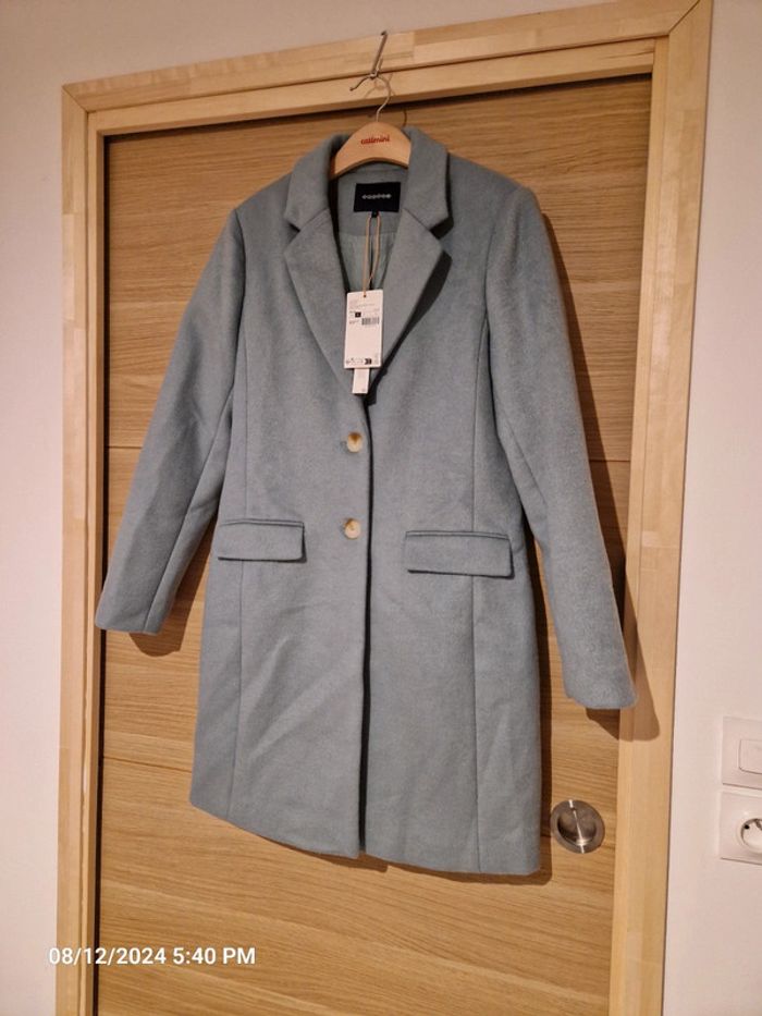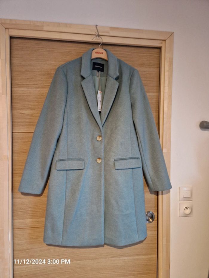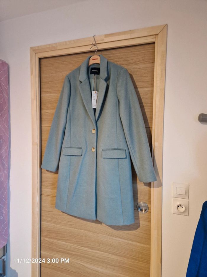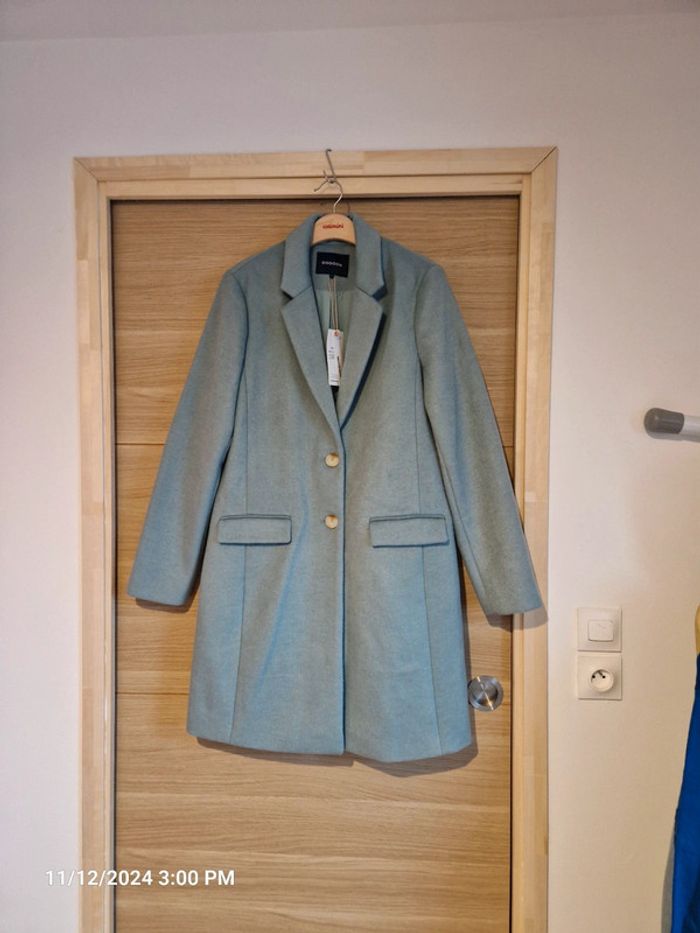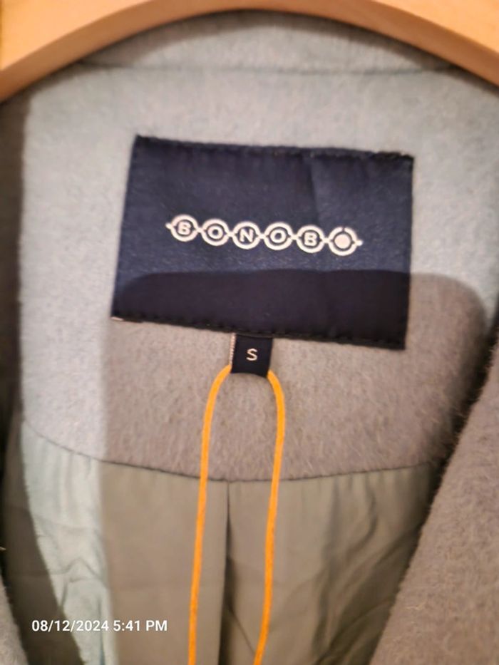 Manteau 3/4 de la marque Bonobo En taille S Contient de la laine Doublure 100% polyester Code Couleur Bonobo : Blue Surf (bleu vert pale) 2 poches extérieures Fermeture par boutons Neuf avec étiquette Prix d'achat 99e