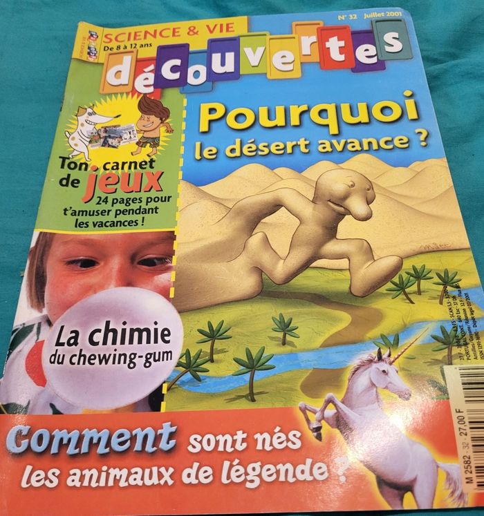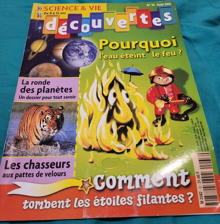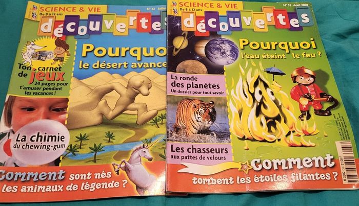 4 magazines sciences et vie découvertes Couverture un peu rayé. Attention il n'y a pas les jouets ou suppléments. Des fois, les jeux sont fait. Une page découpée. N°32 Juillet 2001 N°33 Août 2001 N°34 Septembre 2001 N°36 Novembre 2001