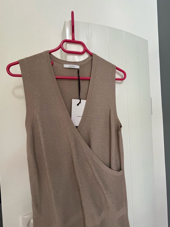 Magnifique robe de soirée Zapa taille M soit 36/38 Neuve jamais portée. Valeur boutique 265€ Couleur taupe avec reflets dorés
