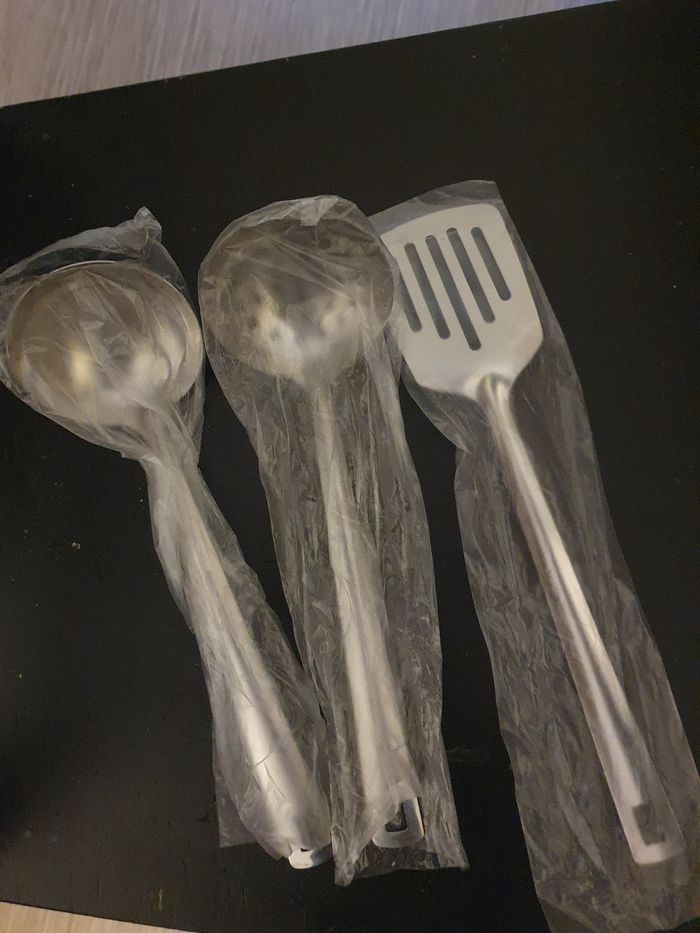 3 ustensiles en inox NEUFS ●Spatule à steak ●Louche ●Louche égouttoir 26 cm