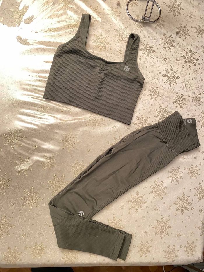 Ensemble de sport femme Oceans Apart Brassière + Legging taille XS couleur Khaki. Joli Ensemble de yoga ou bien ensemble de gymnastique, couleur discrète facile à accorder. Brassière de sport Khaki et son legging de sport taille haute et sans couture. Model : Sydney Set, acheté à 90€ J'ai un deuxième ensemble de couleur bleu sur mon profil. Négociable