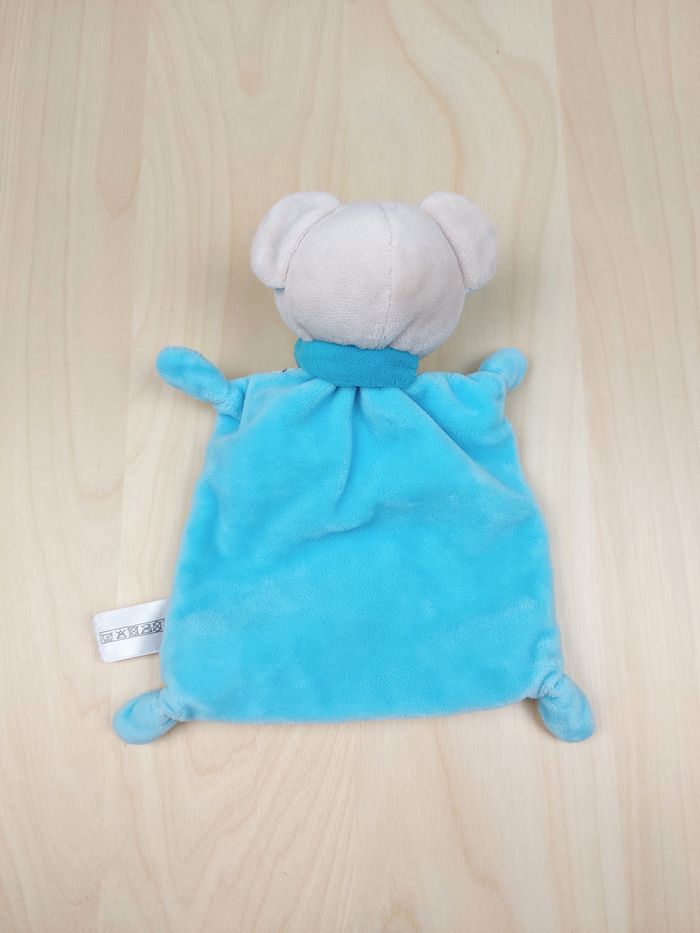 Doudou plat ours bleu turquoise beige blanc pois nuage écharpe bleu Nicotoy Excellent état, jamais servi de doudou Envoi soigné et rapide Réf A10482