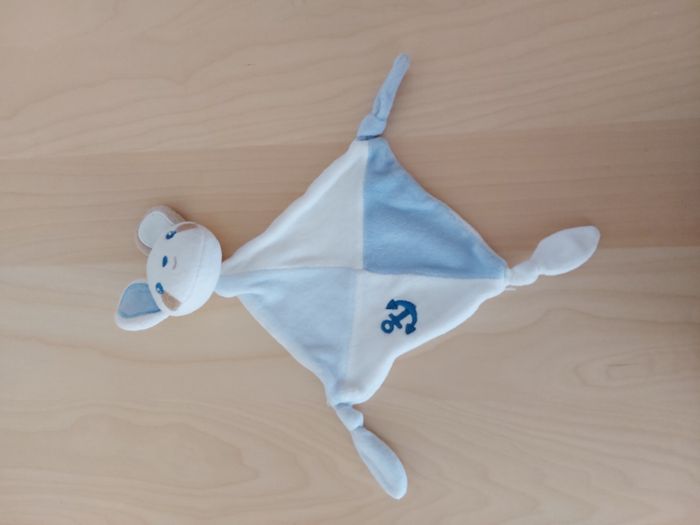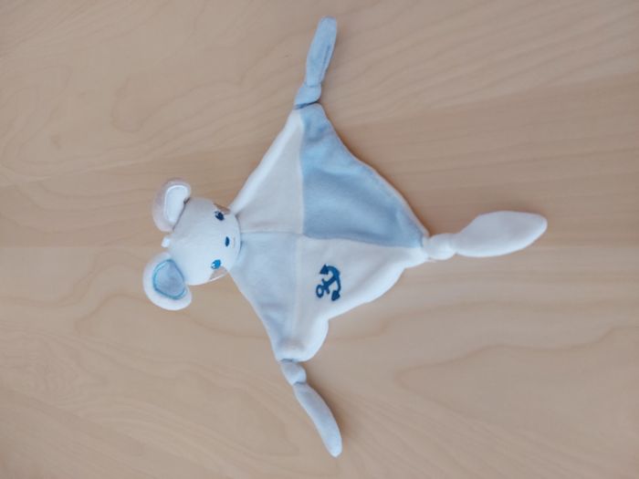 Doudou plat souris blanc beige bleu ancre SIPLEC LECLERC - photo numéro 2