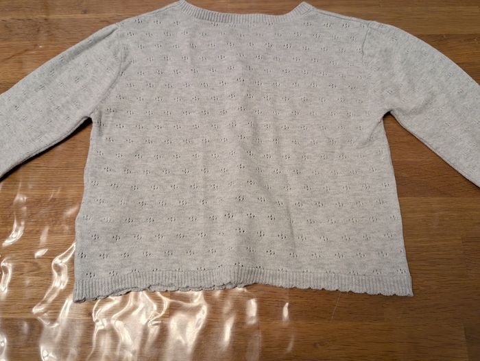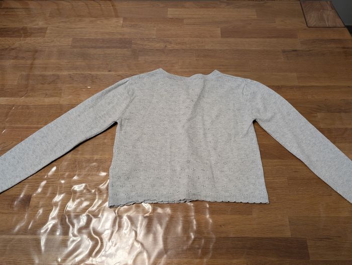 Gilet ajouré fille 8 ans Kiabi Gris clair, bon état, mais commence à boulocher, coton.