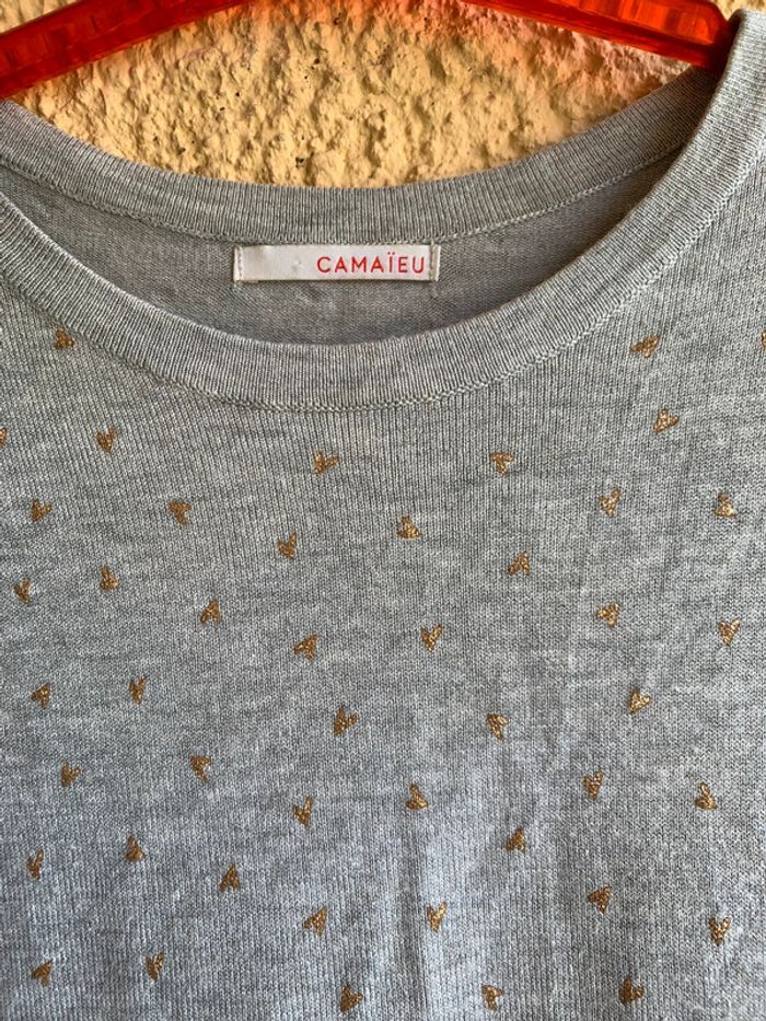 Pull viscose Camaïeu motif coeur taille 36 - photo numéro 1