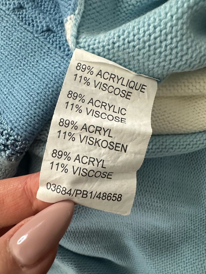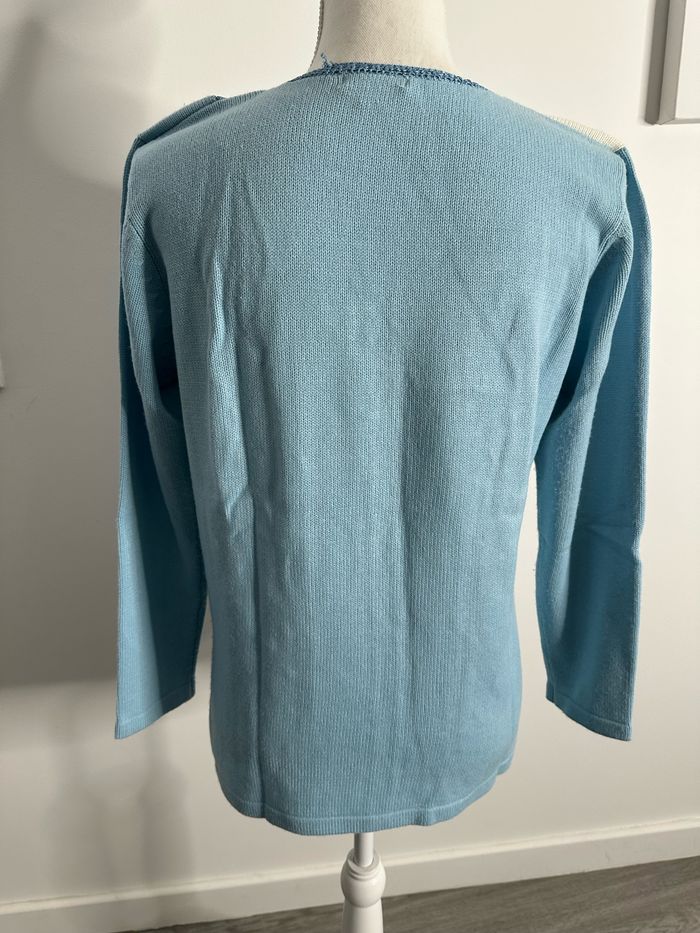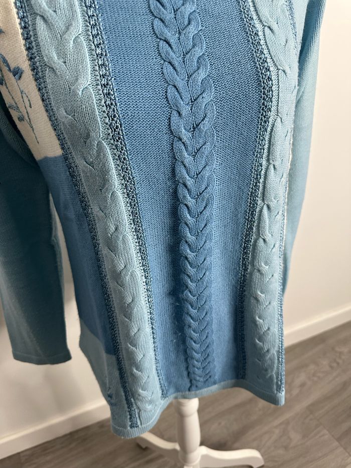 Pull patchwork mailles torsades broderies fleurs bleu et blanc Damart T38/40 M/L - photo numéro 7