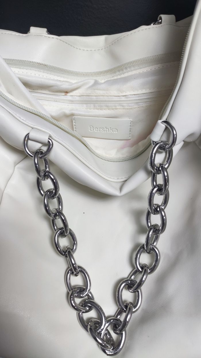 Grand sac à main Bershka Bandoulière Une pochette intérieure Très bonne état extérieur comme neuf Intérieur a nettoyer, le sac passe en machine sans problème.