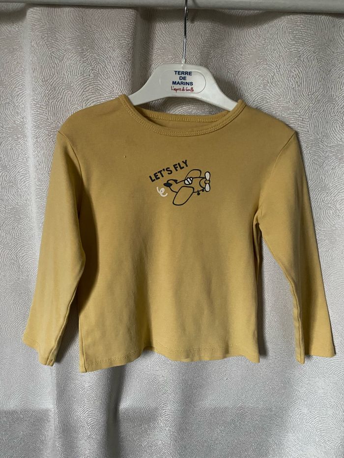 T-shirt ml jaune avion 3 ans kiabi - photo numéro 1