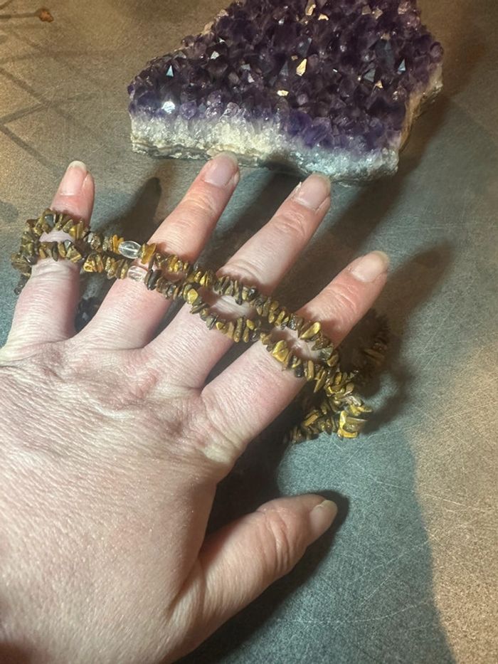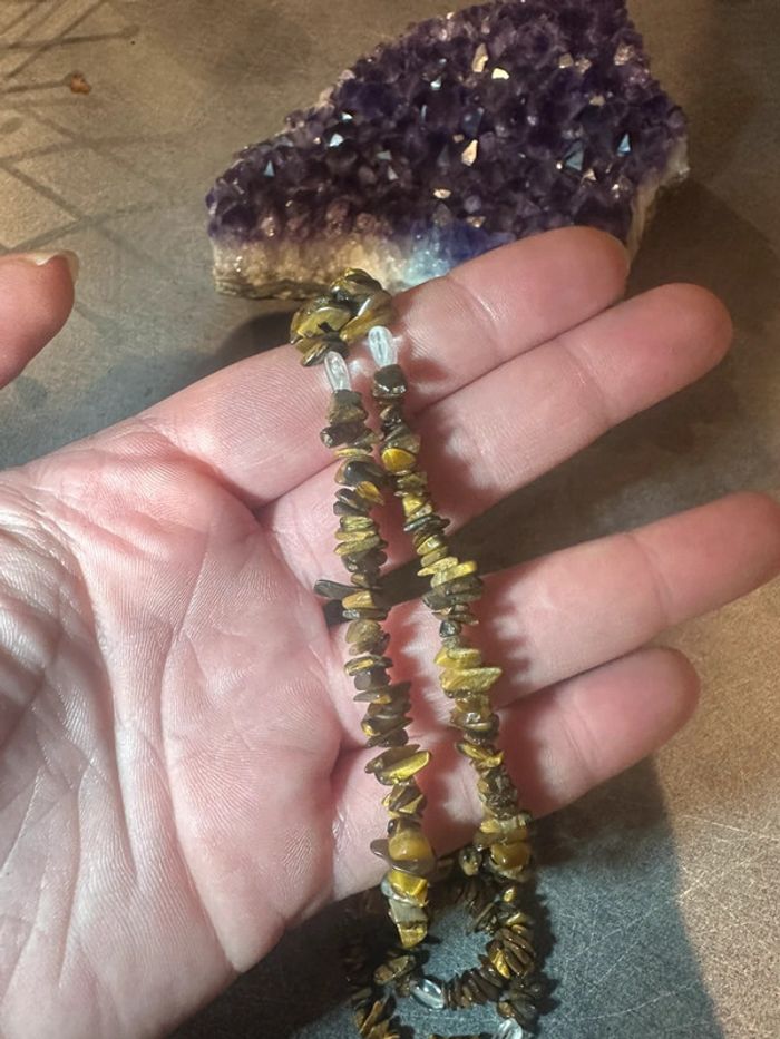 Elle éloigne l’énergie négative sur celui ou celle qui la porte. Cette pierre protège contre toutes les revendications maléfiques, contre la magie noire ou encore les sortilèges. Elle favorise la persévérance, notamment pour atteindre les objectifs que l’on s’est fixés. Elle permet de puiser dans ses propres ressources pour démontrer ce que l’on compte faire. L’œil de tigre agit aussi comme un miroir en donnant conscience à celui qui la porte de ses défauts. La pierre œil de tigre recentre l’énergie et les pensées pour les structurer, pour leur donner une logique et de la cohérence. Elle permet d’enlever le mal-être, voire atténuer la tristesse et favoriser par ce biais la créativité de l’être. #Witch #Sorcière #Lithothérapie #Pierres #Mineral #Bijou #Boheme #boho #hippie #hippy #soin #ernegie #pierreprécieuse #naturel #natural #precieux #mauvaisoeil #precieux #mode #chic #baroque #gothic #gothique #peace #soleil #été #ete #litho #eso #esoterique #esoteric #chakras #lune #spirituel