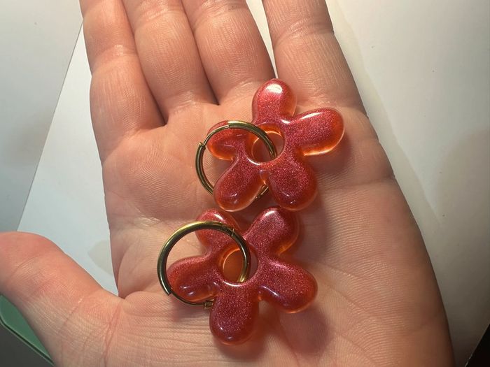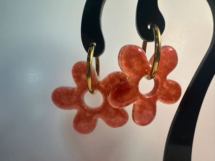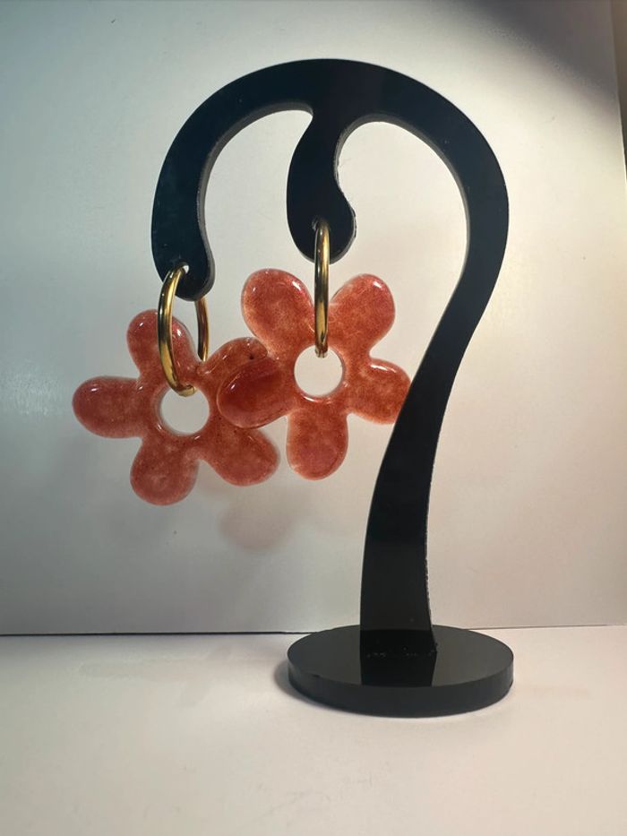 Boucles d’oreilles grosse fleurs rouges orangées - photo numéro 4