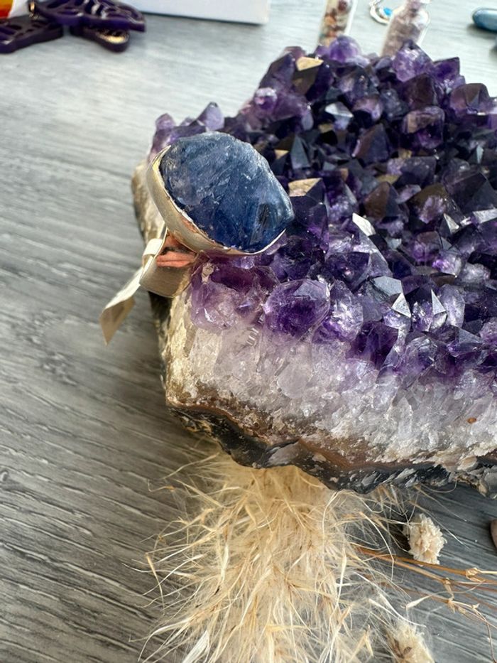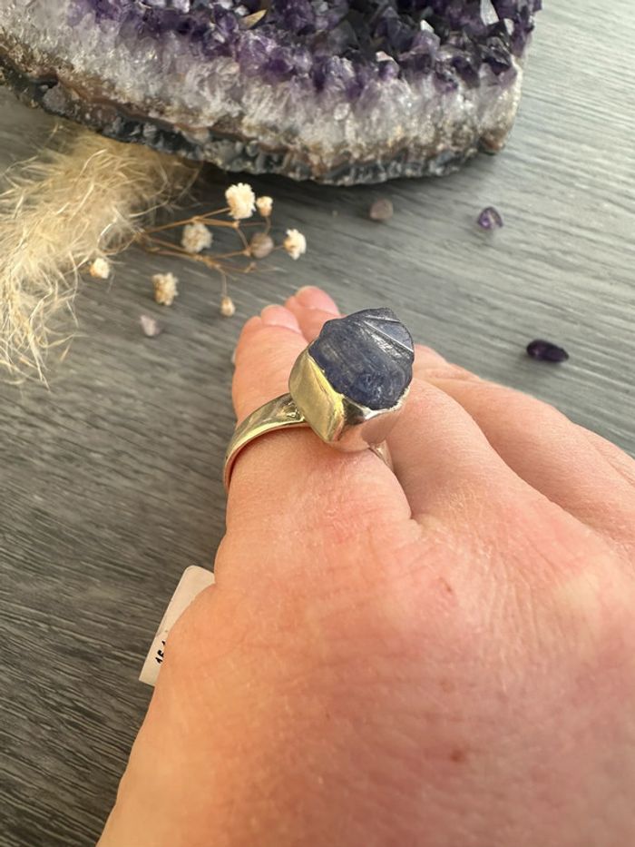 Bague en argent et tanzanite véritable de Tanzanie - Pierre naturelle Poinçon en photo (desolee la qualité n’est pas bonne, difficile à prendre en photo, si besoin je peux faire une video) Haute qualité ! pierre brute Taille visible en photo La tanzanite est une pierre africaine extrêmement rare, dont l’unique gisement se trouve aux pieds du célèbre volcan du Kilimandjaro. Se parant d’un bleu profond aux intenses reflets violets. la tanzanite est reconnue pour ses propriétés stimulantes sur le cerveau dont elle facilite l’irrigation. Son action confère de meilleures capacités cognitives. Cette gemme détient également un fort pouvoir de régénération cellulaire, favorisant ainsi le bon fonctionnement de l’ensemble des organes. Elle possède aussi des bienfaits sur la peau dont elle ravive l’éclat et la fermeté. Dotée de vertus apaisantes, elle soulage et soigne les irritations cutanées et problèmes dermatologiques tels que le psoriasis, l’acné ou encore l’eczéma. #Witch #Sorcière #Lithothérapie #Pierres #Mineral #Bijou #Boheme #boho #hippie #hippy #soin #ernegie #pierreprécieuse #naturel #natural #precieux #mauvaisoeil #precieux #mode #chic #baroque #gothic #gothique #peace #soleil #été #ete #litho #eso #esoterique #esoteric #chakras #lune #spirituel