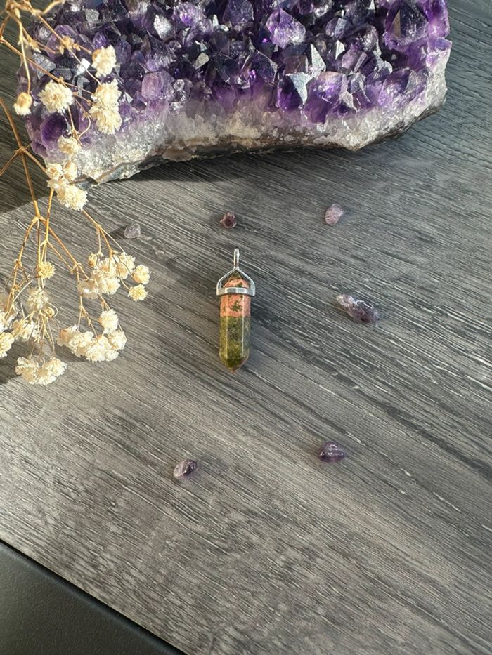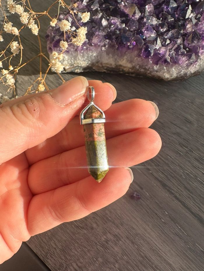 Pendentif pendule en Unakite véritable du Mexique – Pierre naturelle - photo numéro 2